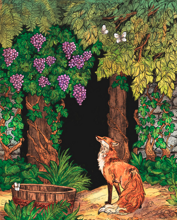 Once upon a time a fox was looking for grapes.He jumped up to get some grapes